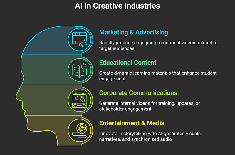 - Entertainment & Media: Innovate in storytelling with AI-generated visuals, narratives, and synchronized audio (1,2).